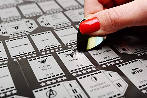 ⭐ EASY SCRATCHING NEW 3 POSTERS in 1 TUBE: 300 + 300 MOVIES AND TV SERIES + WORLD FLAGS - Scratch off Motivation poster for cinema lovers! which selected Best and cult films and TV series. Erase off films that watched and choose your next.⭐ PERFECT GIFT FOR MOVIE LOVERS -a fresh idea of a gift for any holiday for him and her! Our poster comes in gift ready packaging to delight the enthusiasts in your life. A perfect conversation starter, give them a fun and special moment scratching the map with friends and family