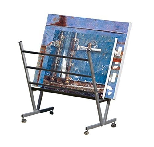 Art Expo Print Rack The ArtExpo Art and Print Rack lets your art be seen and not stored! It really is that simple. If you're selling in a gallery or an outdoor show you want as much product out so you can make the most sales. If you're at home you want a place to showcase your artwork that is attractive and inviting. In your studio you need a place to keep works that are in process and finished art. ArtExpo racks are great for storing framed artwork and unpainted or thoroughly dry stretched canvases too. Available for presenting up to 30 × 40", pieces they are the best you can buy for several reasons. The most obvious is the all metal construction in extremely attractive contrasting silver-tone and black. The use of three 22 mm diameter cross bars allows you to place into them the smallest artwork as well as the largest without the possibility of small pieces falling through the sides. The 6" wide bed where you rest your art is soften with a high quality leatherette vinyl so even framed art will not be damaged or scratched. The four casters are the highest in quality and assure smooth movements on any surface. Measurements - Hold works up to 30 × 40". Holding area 22"h × 34"w × 6"dAvailable for presenting up to 30 × 40", pieces they are the best you can buy for several reasons. The most obvious is the all metal construction in extremely attractive contrasting silver-tone and black.
