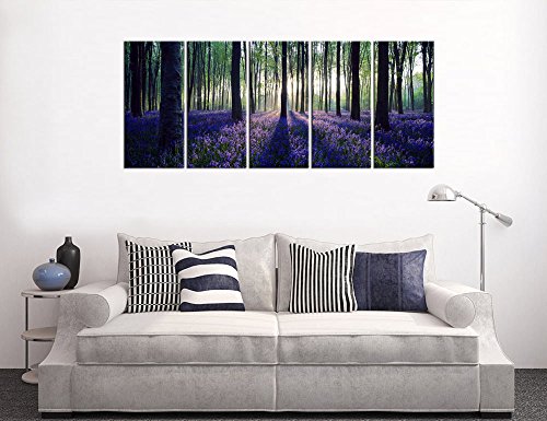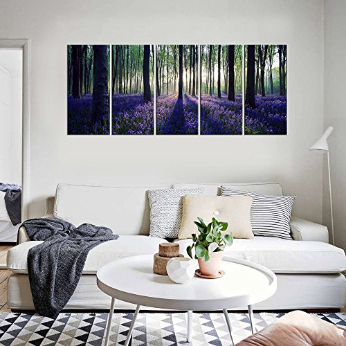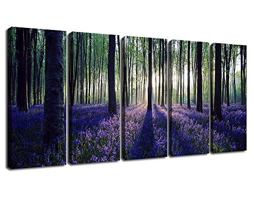 Framed Canvas Art Purple Flowers in Forest Nature Painting Prints Home Decor