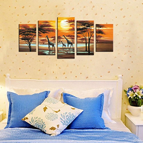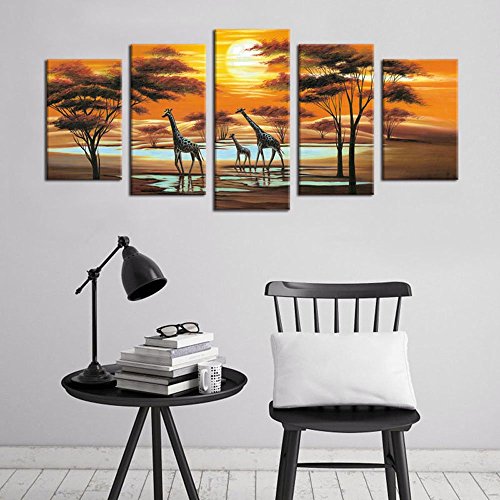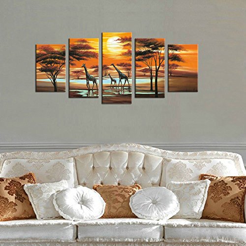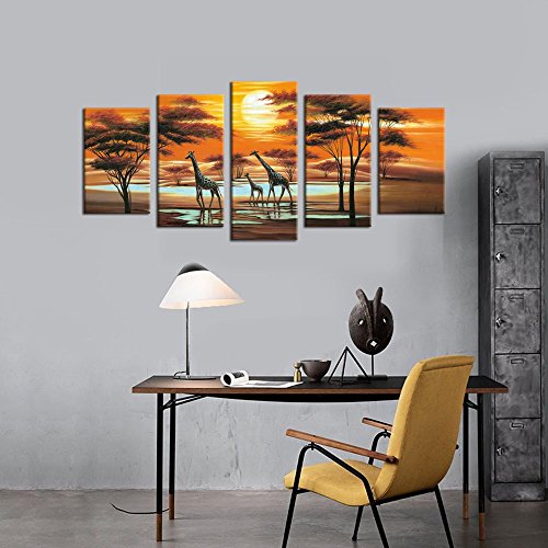 5 Pieces Abstract Painting Canvas Art Sunset African Landscape Pictures Prints Framed Ready to Hang for Home Decoration.