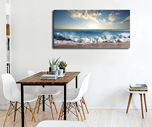 Large Canvas Wall Art Beach Waves Sunset Nature Painting 24" x48" Canvas Picture for Office Bedroom Living Room Wall Decor Home Decoration Framed Ready to Hang