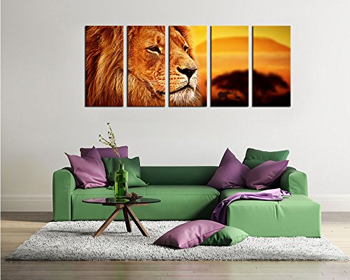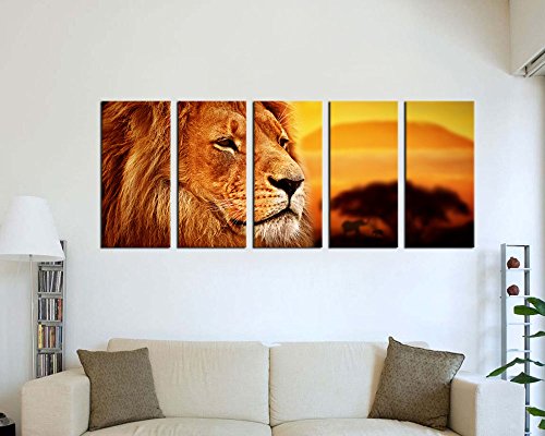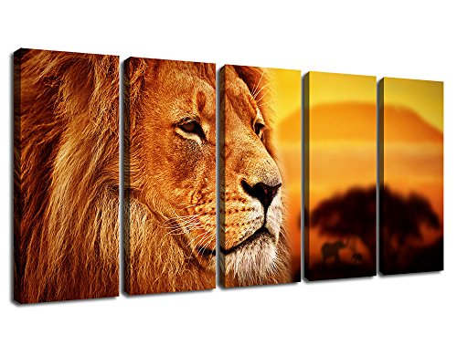 Framed Canvas Art Lion Portrait in Forest Nature Painting Prints Home Decor