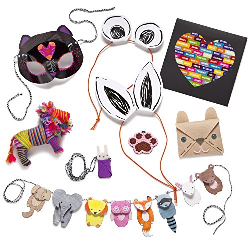 What kids aren't wild about animals? They all are and that's why they'll love this kit that gives them 8 Super fun projects to make, share, give, love and learn about. We give them everything they'll need to create an animal mask, A cute necklace, The world's most adorable yarn Lion, animal ear headbands, and more. It's a kit that contains all kind of warm fuzzy and fun things.Perfect Gift for ages 6 and above: kids will love This pet project!