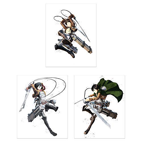 Watercolor Attack on Titan Poster Prints - Set of 3 (8x10) Shingeki no Kyojin Anime Manga Wall Art Decor - Eren Yeager - Mikasa Ackerman - Levi Ackerman