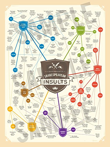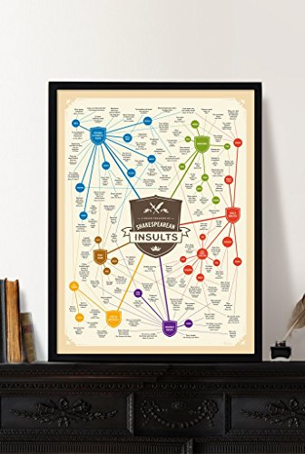 This 18x24 art print poster features 100 of Shakespeare's greatest insults. The odyssey of verbal swordplay includes classics like, "I was seeking for a fool when I found you", and "More of your conversation would infect my brain". (46cm x 61cm) Printed in small batches in the U.S. on thick, FSC certified archival paper Each poster signed by the artist Frame not included.100 OF HIS GREATEST ZINGERS! A tribute to Shakespeare's dagger-like wit.