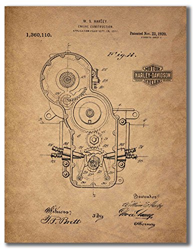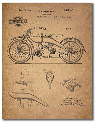 Harley-Davidson, Inc. is an American motorcycle manufacturer, started by William S. Harley, Arthur Davidson, Walter Davidson, and William A. Davidson in 1903. It was founded in Milwaukee, Wisconsin and was one of two major American motorcycle manufacturers to survive the Great Depression. Any Harley Davidson fan knows the quality of their product and would be delighted to own these unique patent photos that will look fabulous as framed decorative wall art.