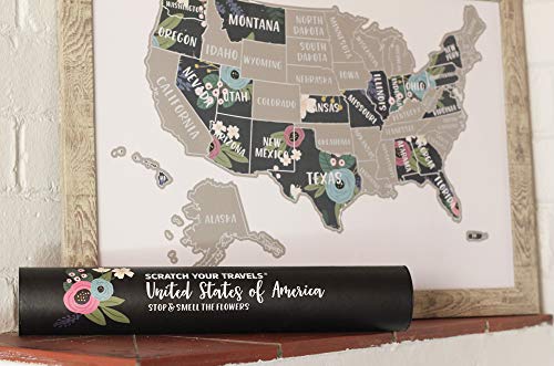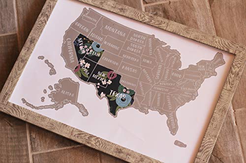 Scratch Your Travels with JetsetterMaps! Scratch the silver foil over states you've visited to reveal an original floral print! Fits any 18x12 in frame. Comes packaged in a sleek contemporary tube for easy gifting or storing. Makes a great gift for people who love to travel!Framable Art: Fits any 12 x 18 in frame perfectly. *Please note this listing does not include the frame.