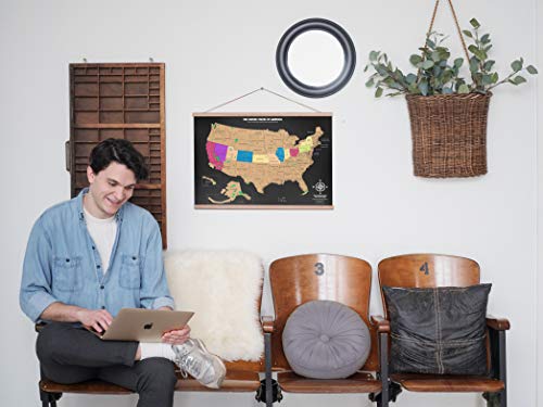 SCRATCH OFF USA MAP POSTER, MADE IN THE USA: Scratch off where you've been and reveal your path in vibrant, bold colors. This travel tracker map will inspire you to plan your next destination.EXPERT DETAILS: This map is carefully and professionally designed by expert cartographers and manufactured in the USA. We've included the major cities, highest peaks, national parks and notable highways so you'll hang onto the details for a lifetime. So even if you can't remember the name of that national park in Minnesota, your map will! Our maps are 17" by 24" and are easy to frame. Hang on the wall with binder clips or pack it along for your next adventure.