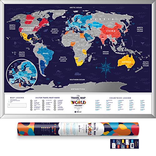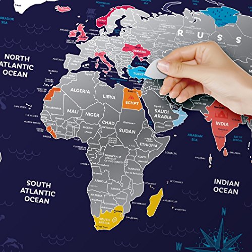 🌎 A GREAT REMINDER: This scratch off world map is the best way to remember the good times and adventures abroad. Just use a coin to scratch the silver coating and reveal the countries you have been to🕒 THIS MAP WILL LAST YOU YEARS: The map is made on the highest quality laminated paper. It will sit proudly on your wall, reminding of all your adventures