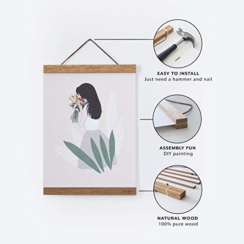 BREATHE AN AIR OF CLASS INTO YOUR ROOM DÉCOR with a natural wood magnetic photo frame made of ecofriendly natural wood and powerful embedded magnets. Hang your A3 or A4 photo, collage, print or painting in style in a 11X8 hanging frame and upgrade your bedroom, living room, bathroom, kitchen or office wall art decoration!GET A STURDY WOOD HANGER FOR YOUR PRINTS: Quality-made from durable oak shade wood and featuring strong magnets that hold your artwork reliably in place, this picture frame hanger is made to last. Environmentally-friendly and heavy-duty, it is a multipurpose picture frame hanger with guaranteed longevity
