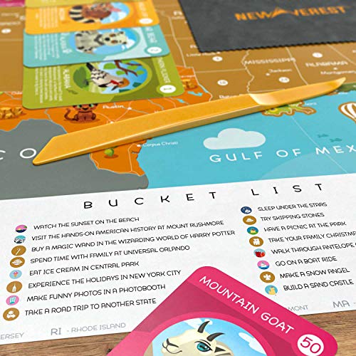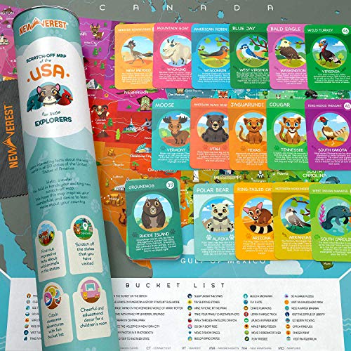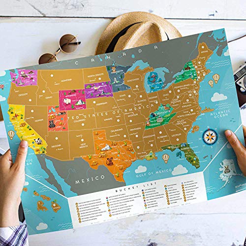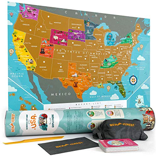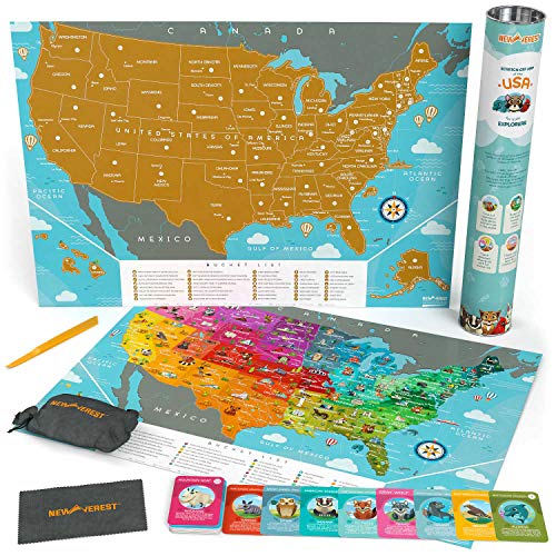This scratch off map of the United States comes with 50 cards depicting 50 state animals. Match cards to states for a fun-filled geography game.Scratch off the foil over each state your family has visited. Perfect way to preserve treasured family memories.
