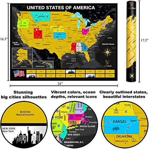 💯 ONLY PREMIUM QUALITY FOR YOU...We pride ourselves on providing amazing UNITED STATES based customer support for all American families. We created the Scratch off Map of the United States with EXCEPTIONAL CARE to provide THE MOST REWARDING traveling experience. Add your USA Travel Map to cart and if you aren't 110% happy, we'll provide you a FULL Refund.