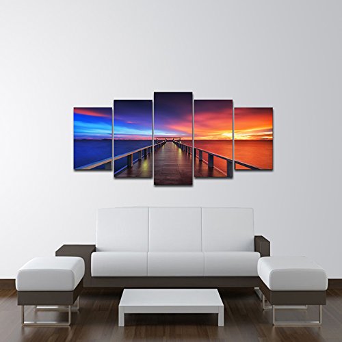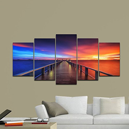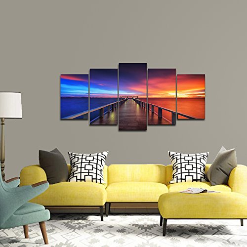 5 piece high definition giclee modern pretty ocean sea beach scenery canvas paintings wall art prints artwork is gallery wrapped for home decorations wall decor. Each panel has a black hook already mounted on the wooden bar ready to hang out of box.Decorative pictures photo printed on high quality canvas. A perfect Christmas and New Year gifts for your relatives and friends.