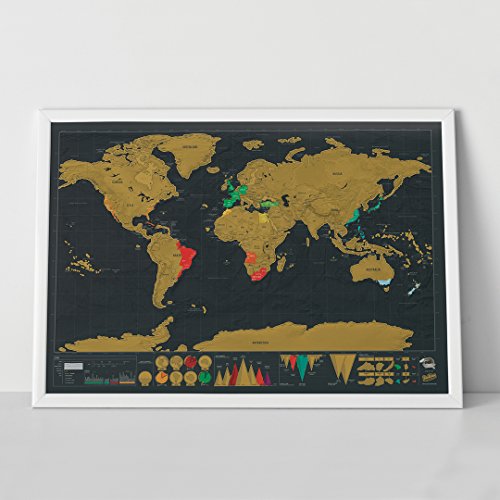 SCRATCH YOUR WAY AROUND THE WORLD - If you've got a stunning back catalogue of worldwide travel adventures then our map is perfect for you. Record a life time of trips and vacations by scratching off where you've already been, the gold foil top layer will be removed to reveal a bright and colorful world underneath.