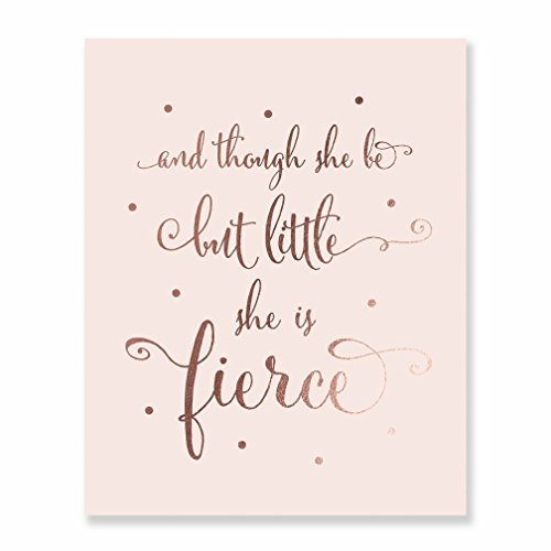 /// Though She Be But Little She Is Fierce /// Inspirational, Motivational. Our rose gold foil nursery art prints are the perfect gift! Beautiful rose gold nursery decor, kids room decor, little girl's room decor or fabulous rose gold bedroom decor. Contemporary rose gold wall art decor in shiny real foil.