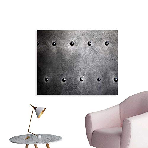 Canvas poster Size:W36"xL32"Custom pattern:Industrial Black Grunge Plate Armour Digital Print with Rivets Industrial Theme Print Black Silver