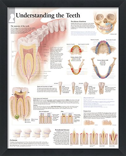 For an extra boost of instructional decor, this convenient poster diagram by WallsThatSpeak is a great way to go. Our 'Understanding Teeth' poster measures 22" x 28" and comes ready to mount in a sleek black frame. Don't worry about having to find a classy frame because we've got you covered. This poster is printed on high-quality, ultra thin paper stock as opposed to rough poster board or stiff cardstock. This yields a clearer, glossier image for more defined display. Each poster is printed only after an order has been placed. Because we don't mass print any of our posters, we save a fortune on paper and ink, which allows us to provide our customers with quality products at a lower cost - all while being kind to the planet. Our colorful posters feature highly detailed diagrams of the human tooth, gums, and roots, outlining some of the essentials of tooth anatomy and health. It mentions dentition, occlusion, periodontal disease, and the structure of the tooth. These posters are lightweight and easy to hang. Each frame comes complete with hanging hardware and tough cardboard backing to keep the poster safe and secure from rips, wrinkles, and tears. Our frames are made with matte finish acrylic materials for a subtle, classic feel. This 'Understanding Teeth' poster from WallsThatSpeak is perfect for any room, from office spaces and waiting rooms to classrooms at the middle and high school level or even collegiate campuses and medical schools. All of our products are printed in the United States! Get your new informational tooth anatomy poster today!FOR DENTISTS & MORE: WallsThatSpeak educational prints are the perfect wall decorations for your classroom or dental office. You probably won't put this poster in your dorm bedroom, dining room, living room, bathroom, kitchen, or other family space, but it's perfect for a doctor's office or college classroom. It makes an awesome gift for your favorite dental hygienist or science nerd!