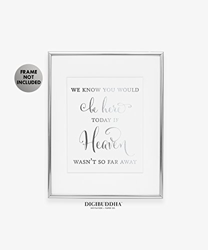 /// We Know You Would Be Here Today if Heaven wasn't So Far Away /// Beautiful classic calligraphy typography silver foil art print to remember family and friends who can't be at the wedding. Family memorial poster, remembrance print.